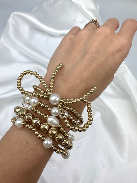 *Χειροποίητο σετ απο 5 βραχίολια απο ακρυλίκες πέρλες. (ελαστικά)